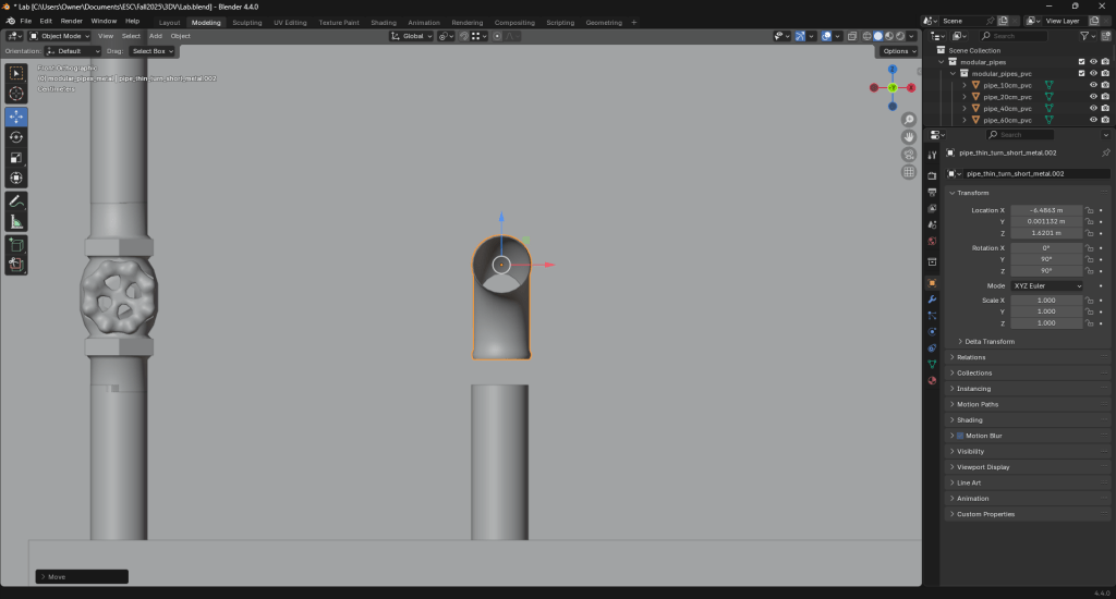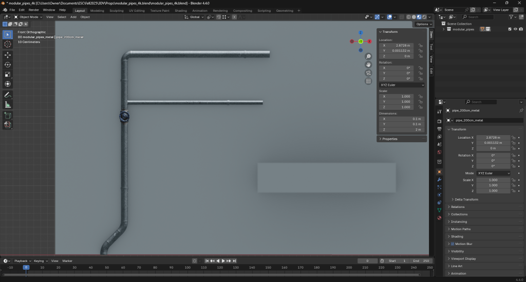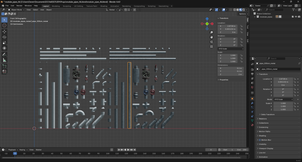 Moving onto scenery, I thought about placing Tubby in a lab. I found a set of modular pipes by Kuutti Siitonen on Polyhaven that I felt would work for that setting.